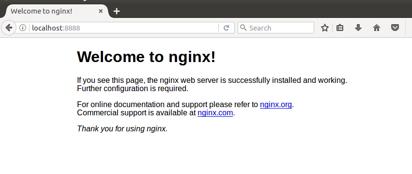 -p后面的第一个8888是本地端口,80是nginx的端口,意思是将nginx端口映射到本地,现在可以访问本地8888端口