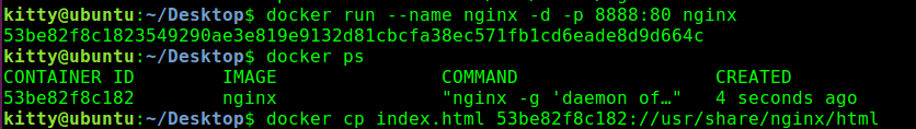 先本地随便写一个index.html 然后当运行一个容器的时候,将该html替换进容器的index.html了