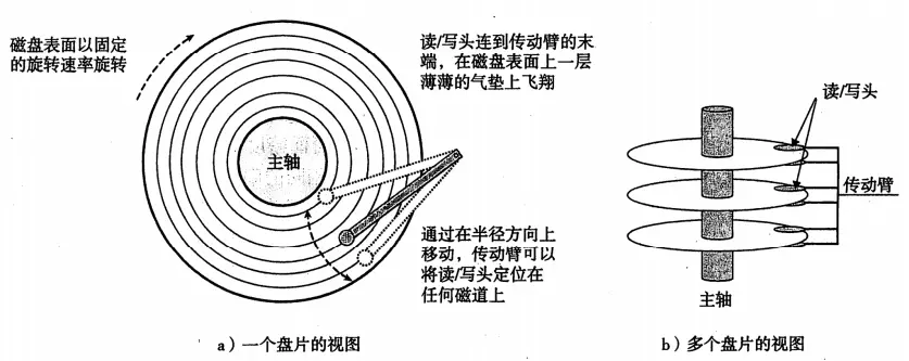 以图a为例,当我们要访问同心圆磁道5的内容时,寻道时间是指传动手臂将读写头移动到同心圆第五磁道的时间,旋转时间指的是同心圆5开始读取内容的位置,如果手臂移动到第五磁道的时候读写位置刚过,就要等磁盘旋转一圈之后再读取;传送时间,扇区第一个位处于读写头的时候,读写该扇区的时间。(寻道时间和旋转延迟大致相当)