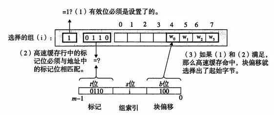 1> 组选择:很好理解,就是地址位中的组索引匹配高速缓存中的组