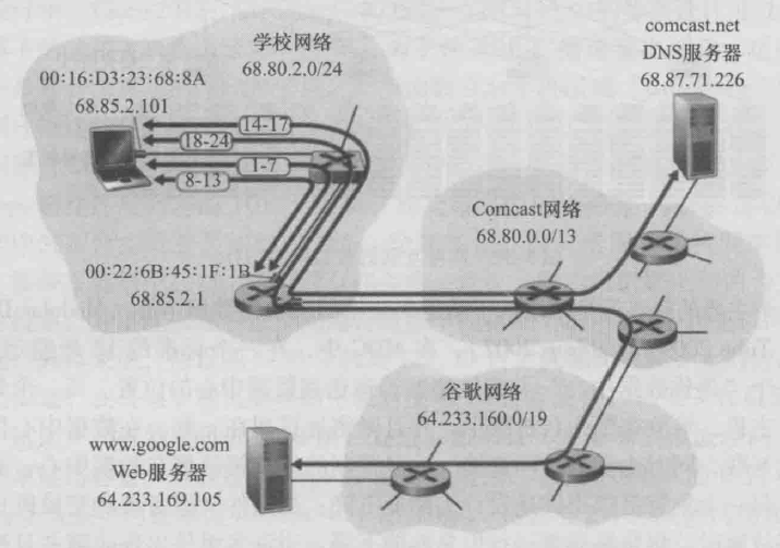 www.google.com。 - comcast为ISP。comcast.net为学校提供DNS服务,服务器在comcast网络中。
