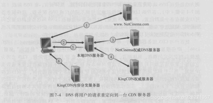 那么CDN是如何管理如此大量的视频的呢?CDN会借用DNS来截获和重定向请求.以下是步骤图: