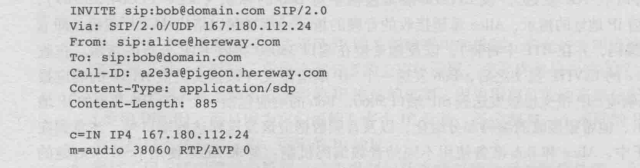 类似于SMTP协议,也有from和to首部行,Call-ID唯一标志此呼叫,也有描述类型和大小的首部行.
