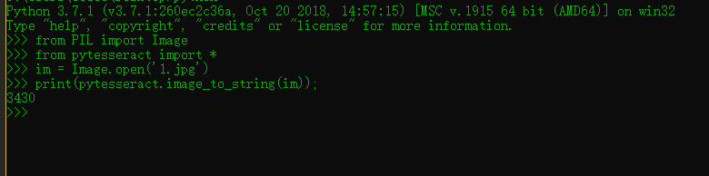 1 2 3 4 5 6 from PIL import Imagefrom pytesseract import *im = Image.open ('1.jpg' ) print (pytesseract.image_to_string(im));