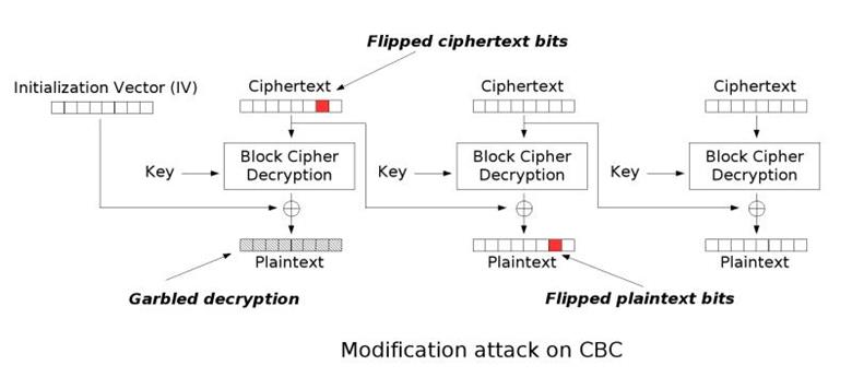 Note: The Ciphertext-N-1 is used to generate the plaintext of the next block; this is where the byte flipping attack comes into play. If we change one byte of the Ciphertext-N-1 then, by XORing with the net decrypted block, we will get a different plaintext! You got it? Do not worry, we will see a detailed example below. Meanwhile, below is a nice diagram explaining this attack