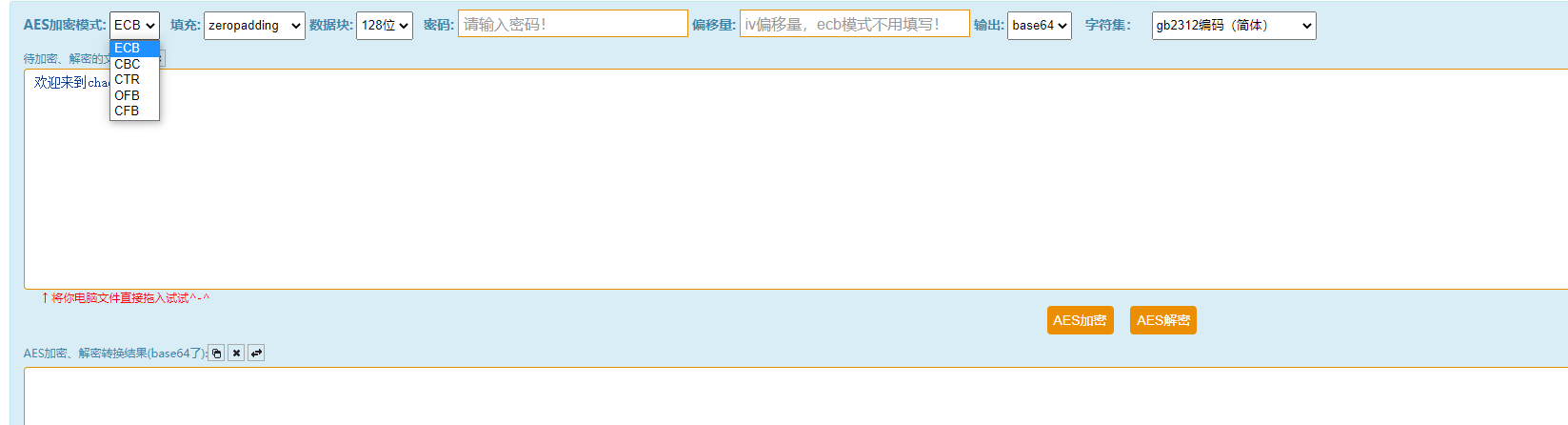 Symmetric encryption has two types of encryption modes, namely block encryption and stream encryption.but in AES algorithm has five modes.if you want to find a aes decrypto/encrypto online mabey you need choice which mode you want use.