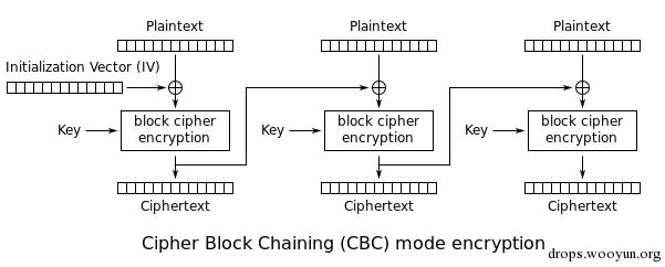In this mode, the plaintext is first divided into several segments, and then each segment is XOR with the initial block(first segments) or the ciphertext segment of the previous segment, and then encrypted with the key.